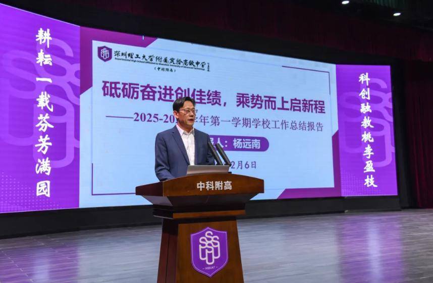近日,深圳理工大学附庸本质高等中学(中科附高)2025-2026学年第一学期期末总结暨犒赏大会圆满举行。大会全面回来本学期学校各项责任后果,犒赏先进集体与个东谈主,部署寒假安全责任,为新学期发展凝合力量,举座师生参与这次大会。