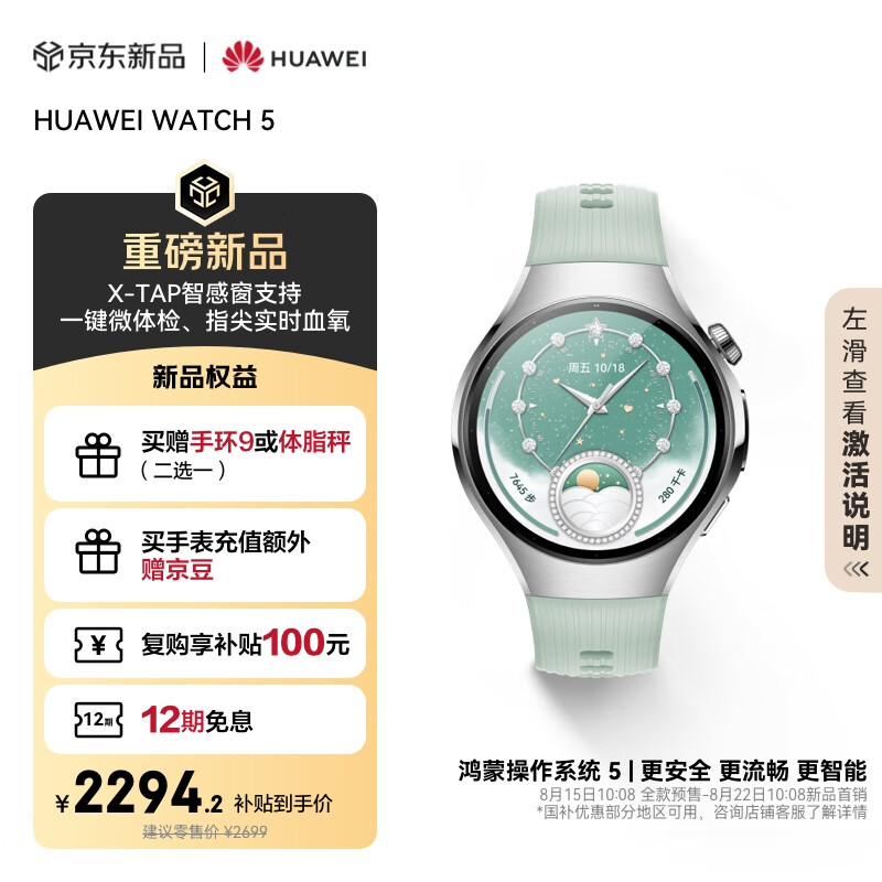 IT之家 8 月 22 日讯息,华为 WATCH 5 全新银河蓝、极光绿本日 10:08 厚爱开售,提供 42mm、46mm 两款型号。